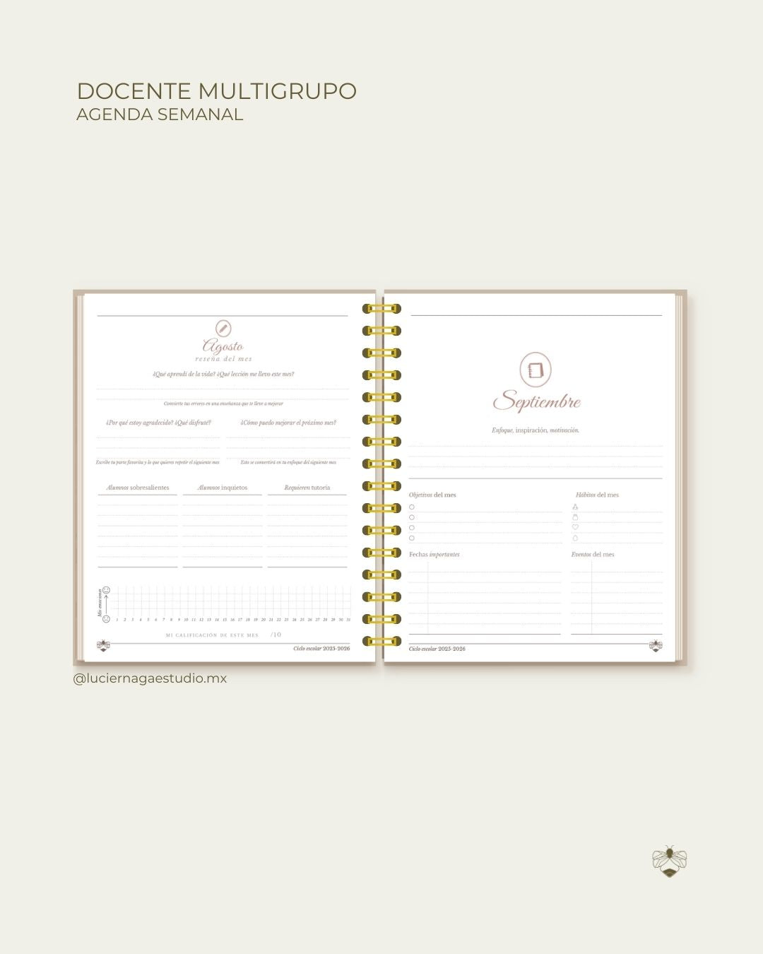 El contenido y concepto de nuestras agendas, en sus 18 ediciones, está protegido y cuenta con certificado vigente ante el Instituto Nacional del Derecho de Autor en México como una obra original bajo la marca registrada Luciérnaga®, orgullosamente nayarita. Queda prohibida la reproducción total o parcial de los elementos, frases, secciones y/o planificadores mostrados.